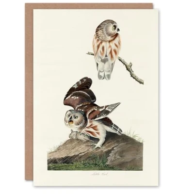 Artery8 John James Audubon Art Card Birds Of America Little Owls
