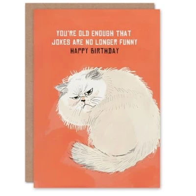 Artery8 Jokes Not Funny Old Age Joke Grumpy Cat Lover Blank For Him Or Her Art Birthday Card
