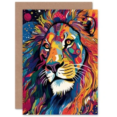 Artery8 Jungle Lion Psychedelic Folk for Husband Him Dad Son Brother Birthday Congratulations Fathers Day Blank Art Greeting Card