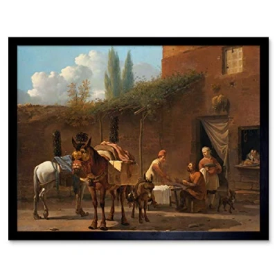 Artery8 Karel Du Jardin Muleteers At An Inn Painting Art Print Framed Poster Wall Decor 12x16 inch