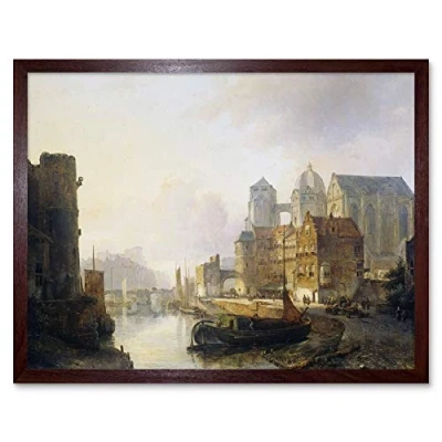 Artery8 Karsen Imaginary View Riverside Town Aachen Cathedral Art Print Framed Poster Wall Decor 12x16 inch
