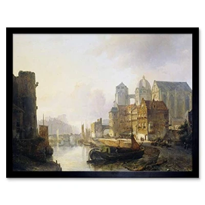 Artery8 Karsen Imaginary View Riverside Town Aachen Cathedral Art Print Framed Poster Wall Decor 12x16 inch