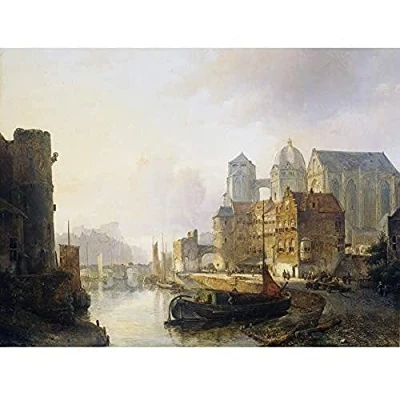 Artery8 Karsen Imaginary View Riverside Town Aachen Cathedral Unframed Wall Art Print Poster Home Decor Premium