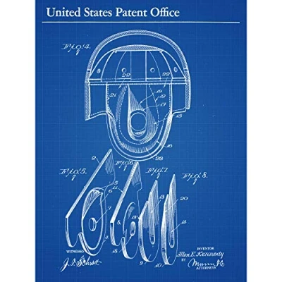 Artery8 Kennedy Football Sports Helmet 1927 Patent Plan Large Wall Art Poster Print Thick Paper 18X24 Inch