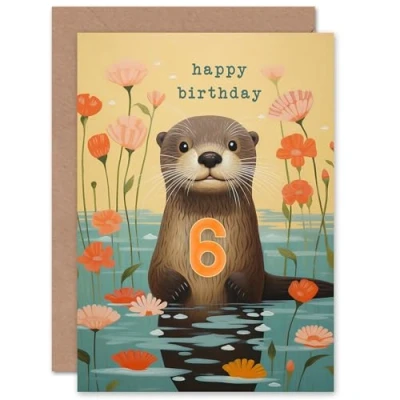 Artery8 Kids Birthday Age 6 Cute Otter Lake Flowers For Child Daughter Girl Blank Inside Greeting Card