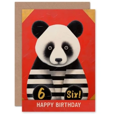 Artery8 Kids Birthday Age 6 Cute Panda Striped Pyjamas For Child Son Daughter Blank Inside Greeting Card