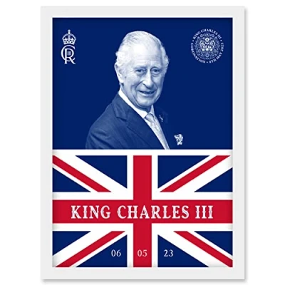 Artery8 King Charles III Coronation Date Crest Emblem Union Jack and Sovereign Artwork Framed Wall Art Print A4