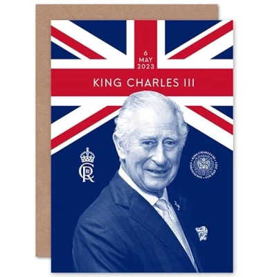 Artery8 King Charles III Coronation Reigning Under the Union Flag Royal Crest Emblem Sealed Greeting Card Plus Envelope Blank inside