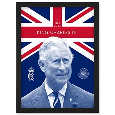 Artery8 King Charles III Reigning Under the Union Flag Coronation Date Crest and Emblem Artwork Framed Wall Art Print A4