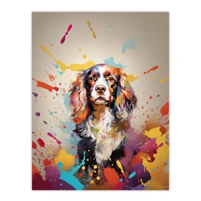 Artery8 King Charles Spaniel Dog Lover Gift Pet Portrait Colourful Artwork Painting Large Wall Art Poster Print Thick Paper 18X24 Inch