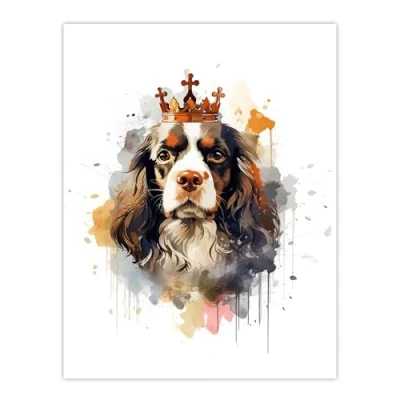 Artery8 King Charles Spaniel with Crown Dog Lovers Gift Watercolour Pet Portrait Painting Artwork Extra Large XL Wall Art Poster Print