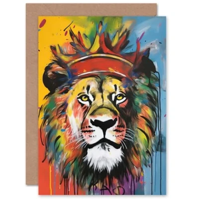 Artery8 King of the Jungle Lion Crown Graffiti for Husband Him Dad Son Brother Birthday Congratulations Fathers Day Blank Art Greeting Card