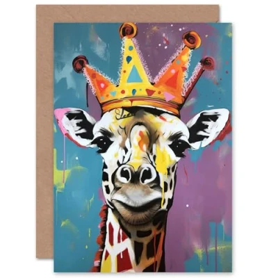 Artery8 King Queen Giraffe Fun for Wife Her Mum Sister Daughter Mom Gran Nan Birthday Thank You Congratulations Blank Art Greeting Card