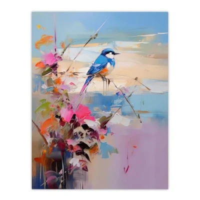 Artery8 Kingfisher Bird and Flowers Oil Painting Abstract Sandy Beach Extra Large XL Wall Art Poster Print