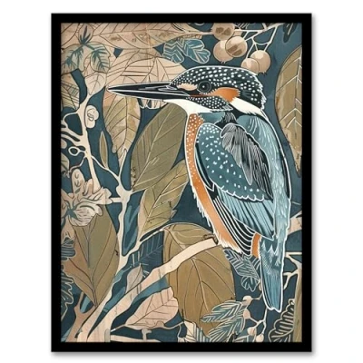 Artery8 Kingfisher Bird on Tree Branch Blue Botanical Living Room Artwork Framed Wall Art Print A4