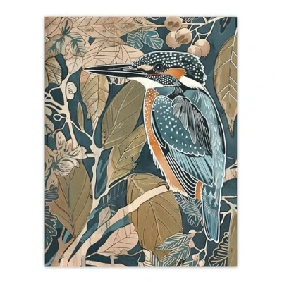 Artery8 Kingfisher Bird on Tree Branch Blue Botanical Living Room Extra Large XL Wall Art Poster Print