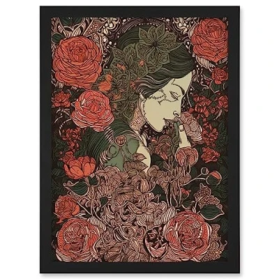 Artery8 Kiss from a Rose Floral Red and Green Illustration Artwork Framed Wall Art Print A4