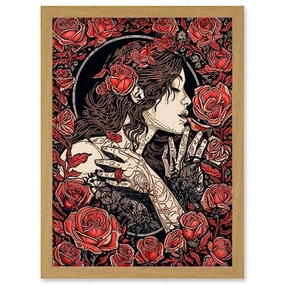 Artery8 Kiss from a Rose Red and Black Floral Illustration Artwork Framed Wall Art Print A4
