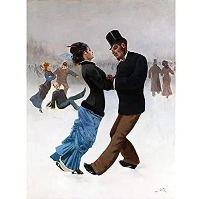 Artery8 Klinger Ice Skaters Painting Art Print Canvas Premium Wall Decor Poster Mural