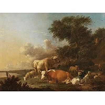 Artery8 Klomp Landscape With Cattle Art Print Canvas Premium Wall Decor Poster Mural
