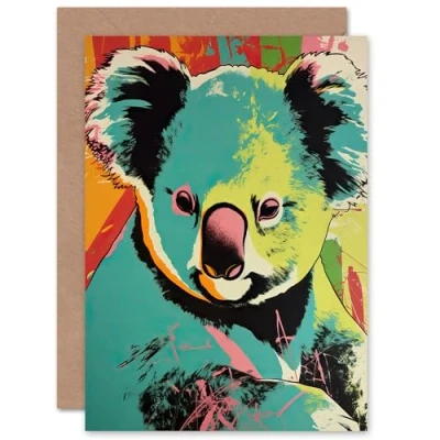 Artery8 Koala Bear Abstract Teal for Him or Her Man Woman Birthday Thank You Congratulations Blank Art Greeting Card
