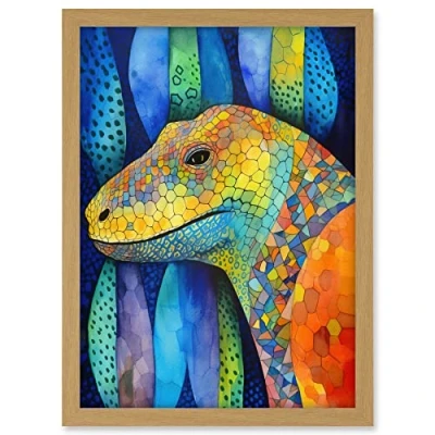 Artery8 Komodo Dragon Vibrant Folk Art Watercolour Painting Artwork Framed A3 Wall Print