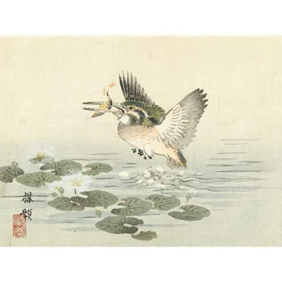 Artery8 Kono Bairei Kingfisher Japanese Woodblock Premium Wall Art Canvas Print 18X24 Inch