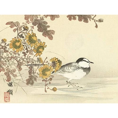 Artery8 Kono Bairei Wagtail Bird Flowers Japanese Woodblock Premium Wall Art Canvas Print 18X24 Inch