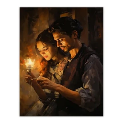 Artery8 La Boheme Young Couple Candlelight Scene Oil Painting Extra Large XL Wall Art Poster Print