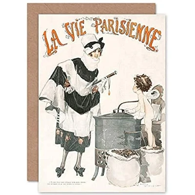 Artery8 La Vie Parisienne Beautiful Lady Kiss Change Cherub Magazine Cover Sealed Greeting Card Plus Envelope Blank inside
