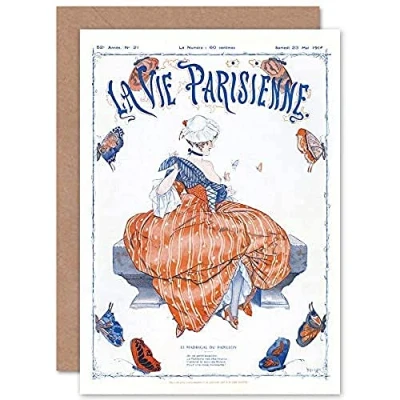 Artery8 La Vie Parisienne Butterfly Woman Magazine Cover Sealed Greeting Card Plus Envelope Blank inside