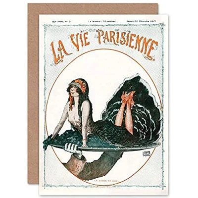 Artery8 La Vie Parisienne Christmas Turkey Magazine Cover Sealed Greeting Card Plus Envelope Blank inside