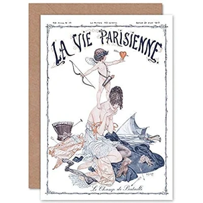 Artery8 La Vie Parisienne Cupid Love Battlefield Magazine Cover Sealed Greeting Card Plus Envelope Blank inside