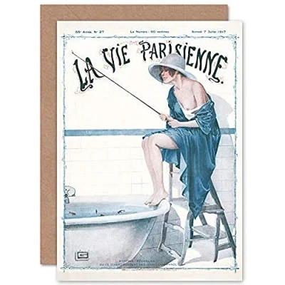 Artery8 La Vie Parisienne Fishing in Bath Magazine Cover Sealed Greeting Card Plus Envelope Blank inside