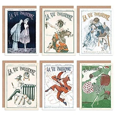 Artery8 La Vie Parisienne French Woman Carnival Jester Clown Greeting Cards With Envelopes Pack of 6
