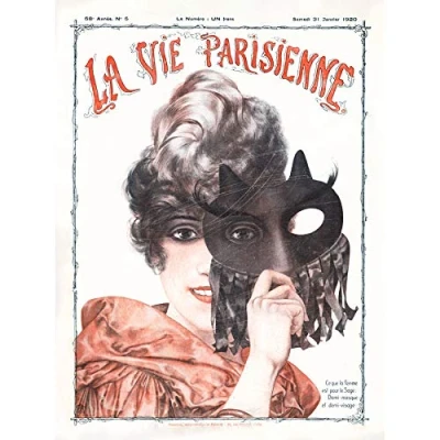 Artery8 La Vie Parisienne Half Mask Wise Woman Magazine Cover Art Print Canvas Premium Wall Decor Poster Mural
