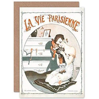 Artery8 La Vie Parisienne Post War Christmas Magazine Cover Sealed Greeting Card Plus Envelope Blank inside