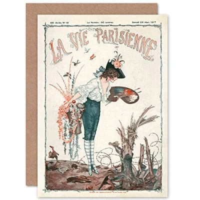 Artery8 La Vie Parisienne Spring 1917 WW1 Trench Magazine Cover Sealed Greeting Card Plus Envelope Blank inside