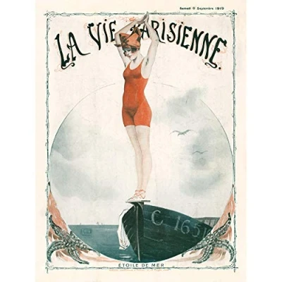 Artery8 La Vie Parisienne Swimming Starfish Magazine Cover Art Print Canvas Premium Wall Decor Poster Mural
