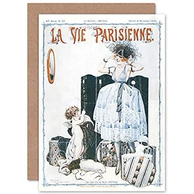 Artery8 La Vie Parisienne Trying On Hats Cherub Magazine Cover Sealed Greeting Card Plus Envelope Blank inside