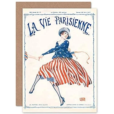 Artery8 La Vie Parisienne USA Enters WW1 Magazine Cover Sealed Greeting Card Plus Envelope Blank inside