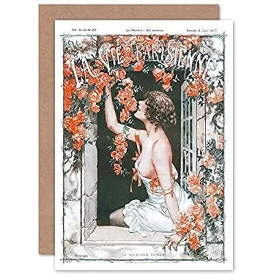 Artery8 La Vie Parisienne Window Roses Flowers Magazine Cover Sealed Greeting Card Plus Envelope Blank inside