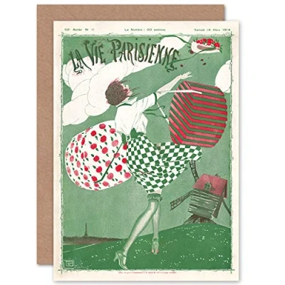 Artery8 La Vie Parisienne Windy Day Shopping Magazine Cover Sealed Greeting Card Plus Envelope Blank inside