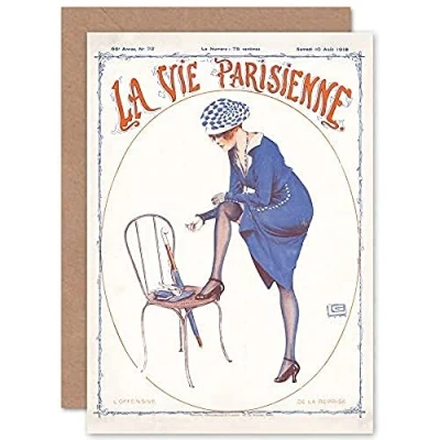 Artery8 La Vie Parisienne Woman In Blue Magazine Cover Sealed Greeting Card Plus Envelope Blank inside