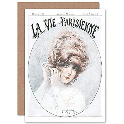 Artery8 La Vie Parisienne Woman with Earrings Magazine Cover Sealed Greeting Card Plus Envelope Blank inside