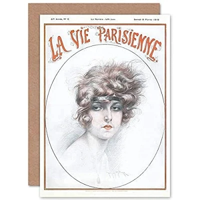 Artery8 La Vie Parisienne Woman with Headband Magazine Cover Sealed Greeting Card Plus Envelope Blank inside