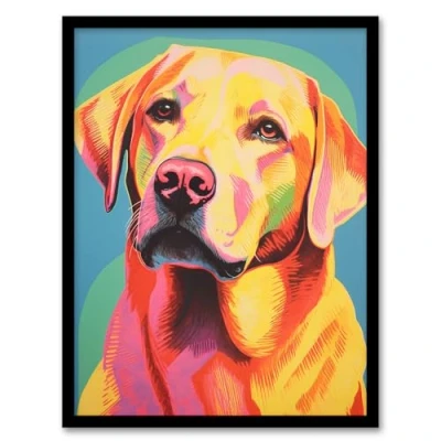 Artery8 Labrador Retriever Retro Screen Print Risograph Dog Artwork Spot Block Colour Duotone Riso Interior Design Framed Wall Art A4