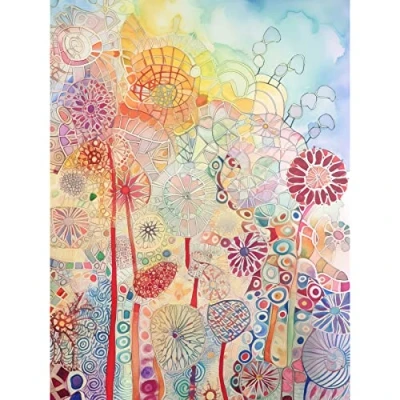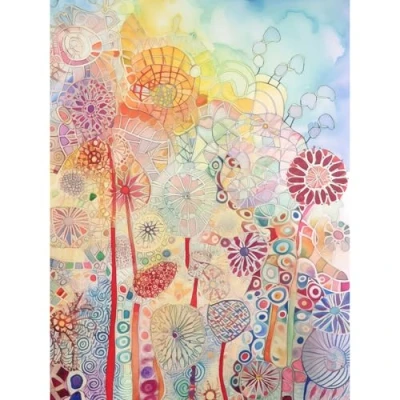 Artery8 Lace Pattern Flowers Multicoloured Folk Art Watercolour Painting Extra Large XL Wall Poster Print