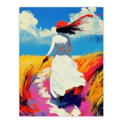 Artery8 Lady Walking Through Windy Wheat Field Landscape Living Room Extra Large XL Wall Art Poster Print