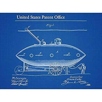 Artery8 Lake Submarine Vessel Exterior 1897 Patent Plan Art Print Canvas Premium Wall Decor Poster Mural
